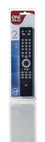 Die One For All Slim Line 2 URC 3920 ersetzt die verlorene oder defekte Originalfernbedienung und bedient 2 Geräte, den TV (oder Projektor) und den DVD-Player, DVD-Rekorder oder DVD-Kombi DVD/HDD, inkl. Funktionen wie z.B. „Guide“- und „Info“-Taste, Menüsteuerung, Farb-/Helligkeitseinstellung, 16:9, Videotext, Toptext u.v.m.