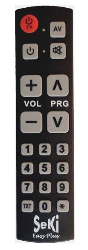 Extra große, einzeln abgetrennte Tasten Programmwahl durch das Drücken der einzelnen Zahlentasten möglich Programmwahl durch das Drücken der Pfeiltasten möglich (schaltet alle Kanäle der Reihe nach durch) Sehr einfache Bedienung Universalfernbedienung für TV, Videogeräte, Audiogeräte oder Stereoanlagen Kann jede Infrarot-Fernbedienung ersetzen Sehr einfache Inbetriebnahme, durch die Einstellung der SeKi Easy Plus, auf die Steuersignale Ihrer alten Fernbedienung Die Fernbedienung ist lernfähig und kann somit jegliche Steuersignale Ihrer alten Fernbedienung erlernen Steuert Ein/Aus, Laut/Leise, Programmwahl vor/zurück, direkte Programmwahl über Zifferntasten, Ein/Aus für ein zweites Gerät wie z.B. einen Recievers, Stummfunktion, AV-Taste Benötigt 2 x AAA 1,5 Volt Batterie (nicht im Lieferumfang enthalten) Größe 19,0 cm x 4,7 cm